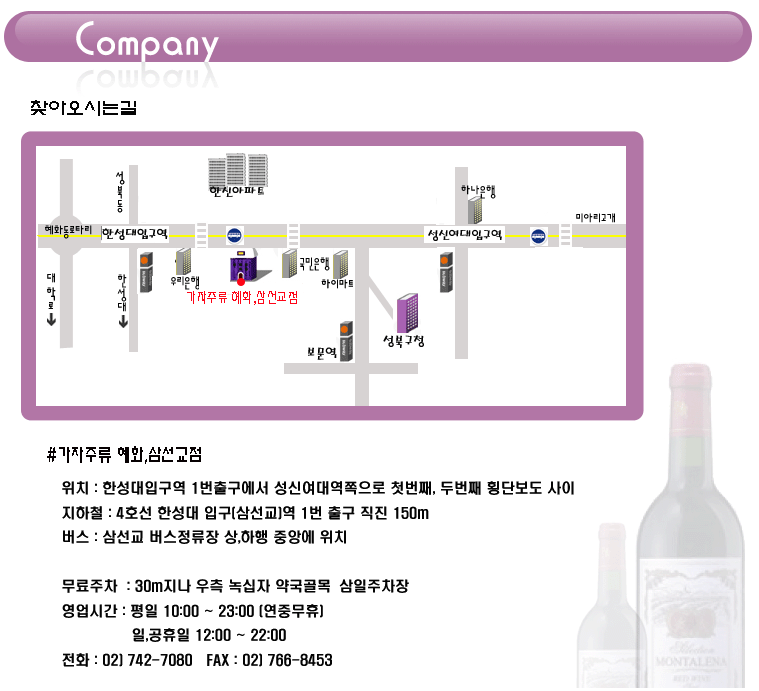 TEL : 02-742-7080 | ÁÖ·ù¸éÇã 209-5-31849 l À̸ÞÀÏ wine8452@hanmail.net
